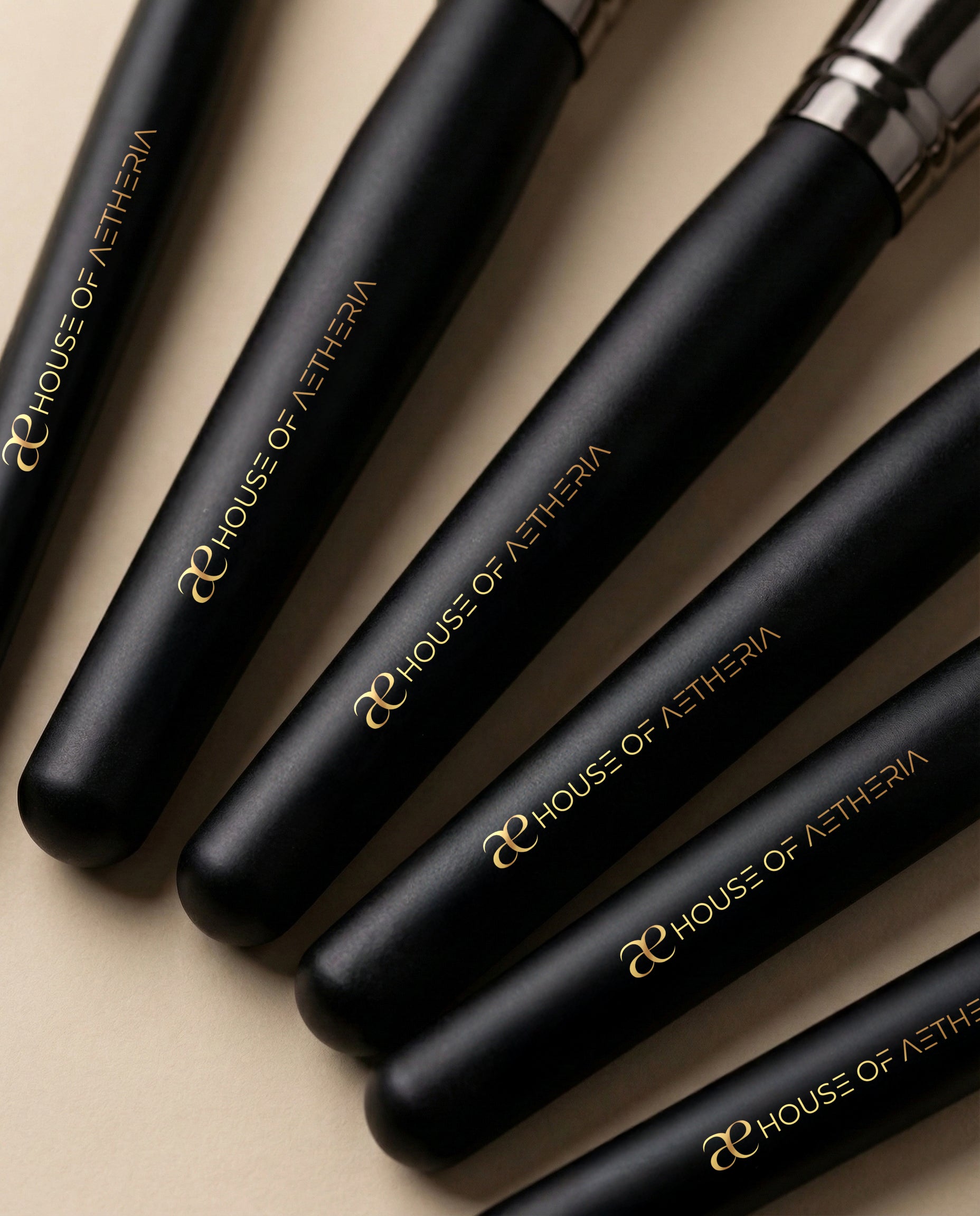 PROFESSIONAL SET: Luxurious makeup brush collection from House of Aetheria in elegant Grigio colour, perfect for creating flawless makeup looks.